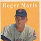 Showcasing a youthful look, Roger Maris' 1958 Topps rookie card has a bright yellow-orange background. Raw and low grade versions can be found for under $100, while high grades can approach the mid-four figure range.