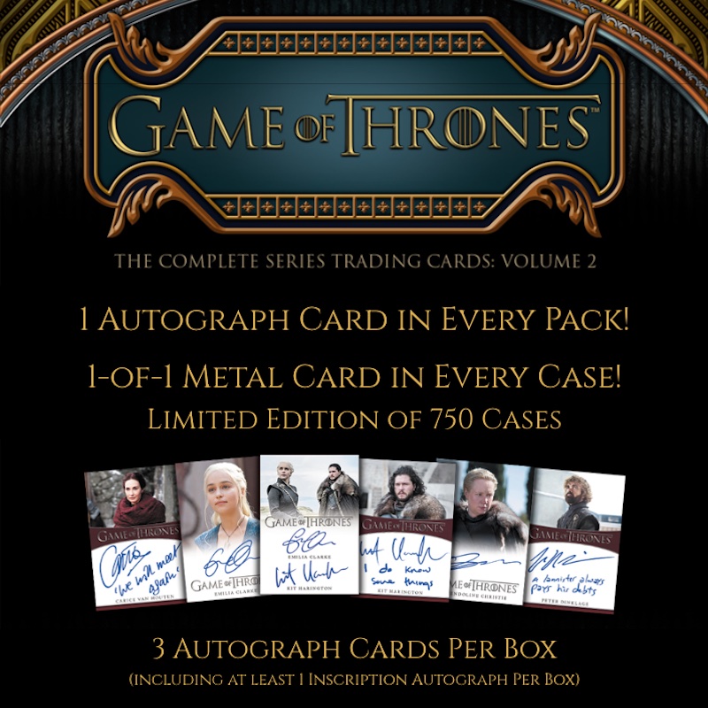 Building on the retrospective trading card line, 2022 Rittenhouse Game of Thrones Complete Series Volume 2 offers more autographs per box and a new autograph-per-pack format.