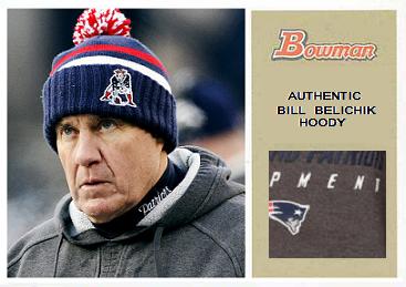 Tom Landry's Hat, Vince Lombardi's Glasses, Steve Spurrier's Visor, Bobby Knight's sweater, Denny Green's Wind Breaker, and Bill Belichik's Hooded Sweatshirt. Whether you love or hate Belichikdoesn't change the fact that he is both great andun-conventional. As one of my all-time favorite coaches, I would gladly buy a 120-point magnet case to fit this card into my collection. This begs the question, where did all the coach cards go? Al Davis probably had something to do with it, I can't prove it, but I can prove that Tom Cable is an NFL coach.