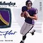 2008 SP Authentic bucks the trend of ultra-low numbering for high-end rookie cards. With a print run of 999, it's one of the more plentiful autographed Joe Flacco rookie cards. It's also one of the most attractive and widely traded. Hard-signed, it also comes with a patch piece. The swatch is smaller than National Treasures and Exquisite, but it's nonetheless a beautiful card.