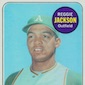 Although he started his MLB career while the A's were still playing in Kansas City in 1967, the first Topps card for Reggie Jackson came after the team's move to Oakland and has proven to be the key rookie in the 1969 Topps set. With the exception of highly-graded copies of Mickey Mantle's base card, it is also the most valuable card from the set.