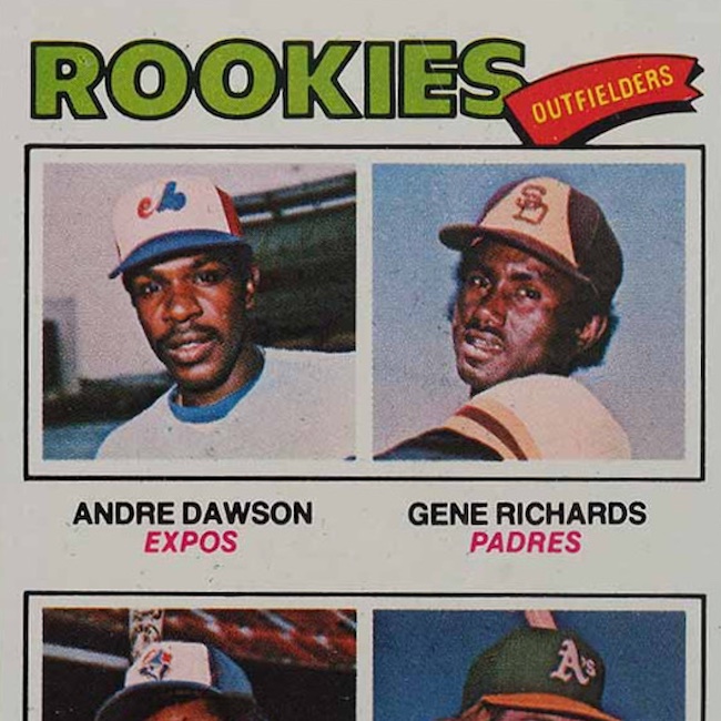 1. 1977 Topps Andre Dawson RC #473 (with Gene Richards/John Scott/Denny Walling)