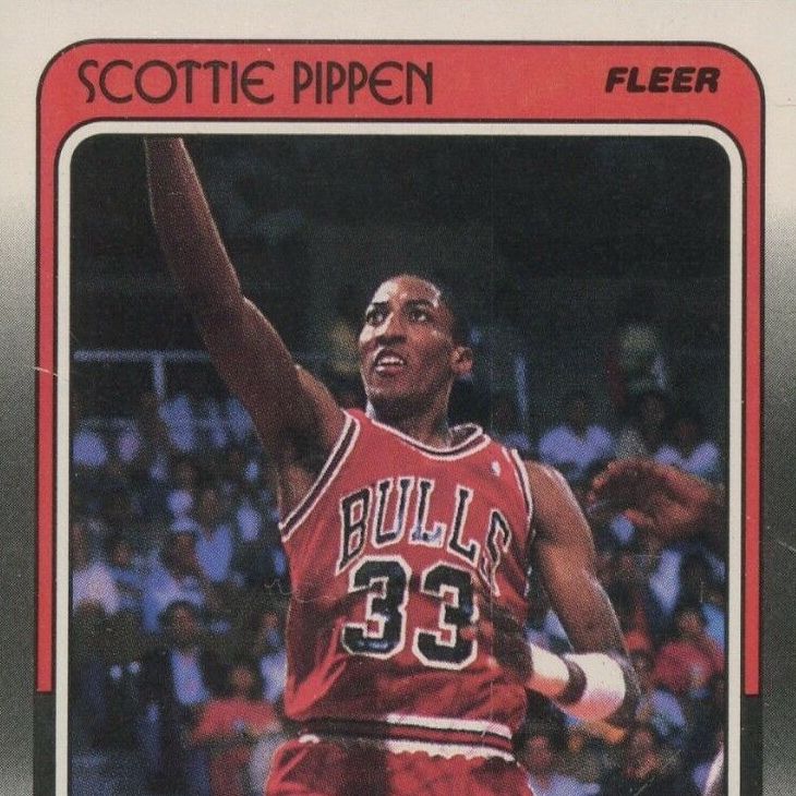 Still an underappreciated rookie card, 1988-89 Fleer Basketball is home to the only Scottie Pippen rookie card. Fleer actually misspelled Pippen as "Pippin" on the back, but this is an uncorrected error so there is no added premium.