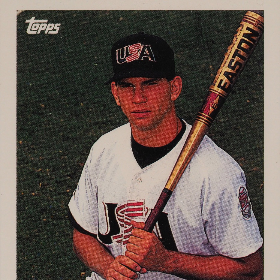 The Todd Helton Bazooka rookie card has a nearly identical appearance to his popular 1993 Topps Traded version, except for the little Bazooka logo in the top right-hand corner. Despite their similarities, there is another significant difference between the two cards—print run. 1993 Bazooka featured just 22 USA Baseball cards that were sold as a complete set via tins of Bazooka bubble gum. There has never been a definitive number placed on the quantity produced by Topps, but based on the price and population of graded cards, it is low for this period of time. Amongst Helton collectors, this card is the gold standard, and its price can be exponentially higher than the base Topps Traded rookie.
