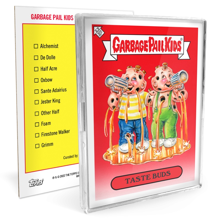 Curated by artist Keith Shore, 2022 Topps Garbage Pail Kids Taste Buds pairs the classic GPK style with breweries across the world.